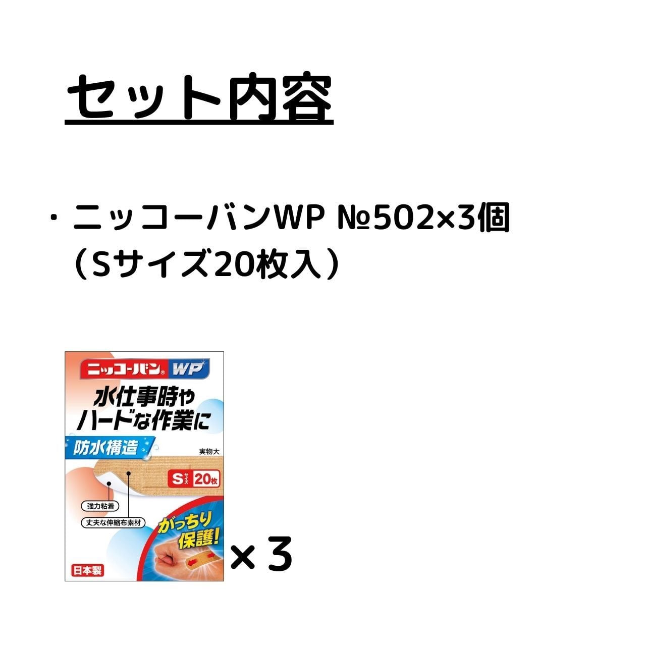 ニッコーバン№501(Sサイズ20枚入)【3個】計60枚を1セットとしてクリックポストでお届けいたします。