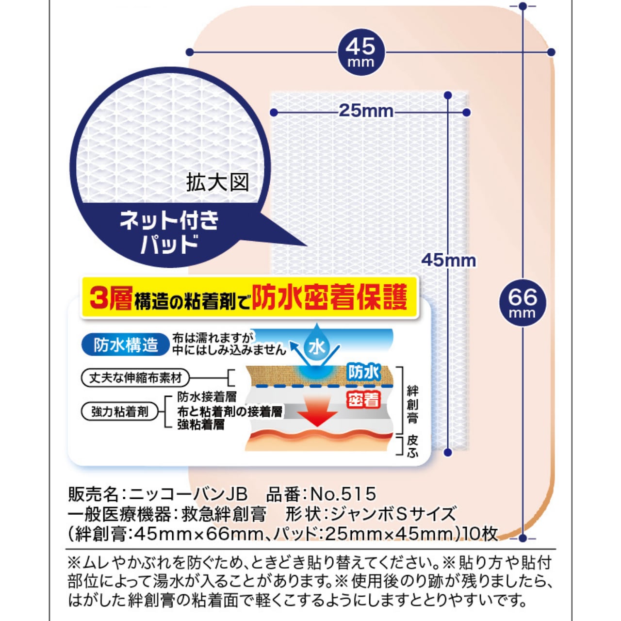 ニッコーバンのジャンボSサイズ№515【3個】を1セットとしてクリックポストでお届けいたします。1箱に10枚入っております。3個なので合計30枚となります。